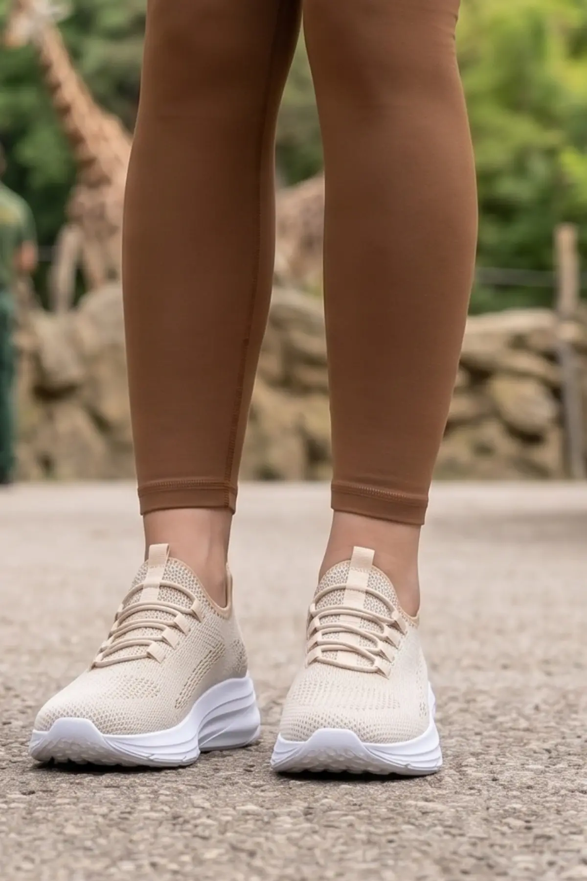 Her Tarza Uygun Estetik Zarif bej tonu ve minimalist bağcık detaylarıyla bu ayakkabı; taytlarınız, kot pantolonlarınız ve hatta spor elbiselerinizle kusursuz bir uyum yakalar. Hem spor salonunda hem de şehir hayatında şıklığınızdan ödün vermeden rahatlığın tadını çıkarın.