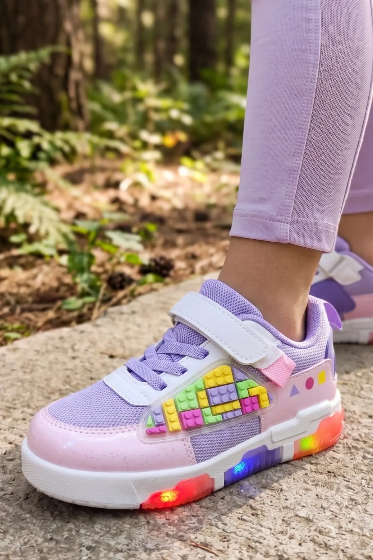 Akıllı Işık Teknolojisi: Tabanına entegre edilmiş çok renkli LED ışıklar, her adımda, zıplamada ve koşuda devreye girerek yürümeyi eğlenceli bir oyuna dönüştürür.