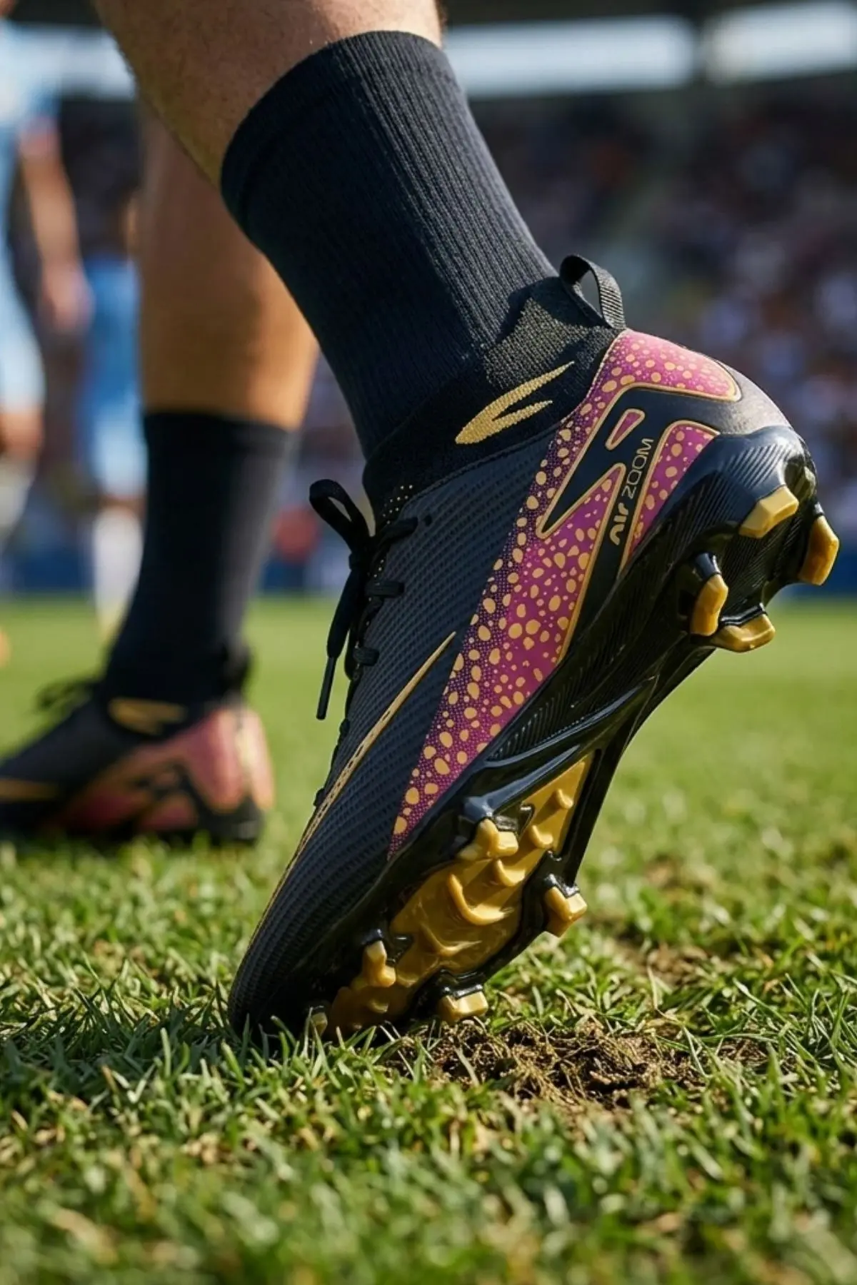 • Üstün Zemin Tutuşu: Çim ve suni çim sahalar için özel olarak dizilmiş dayanıklı krampon çivileri, ani dönüşlerde ve çalımlarda kaymayı önleyerek yere tam ve sağlam basmanızı sağlar.