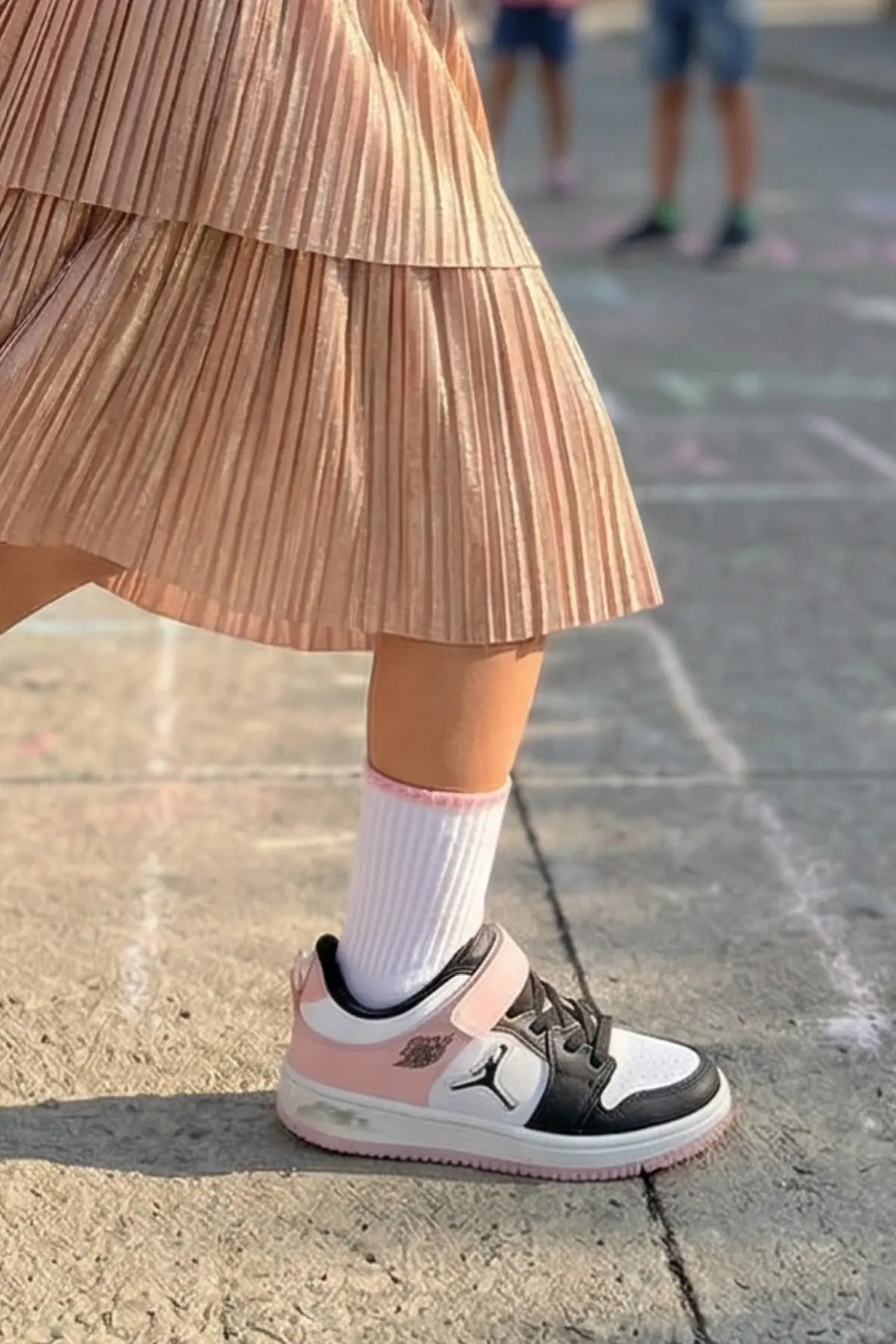 Dayanıklı ve Esnek Taban: Pembe renkli, tırtıklı dış taban hem yer tutuşunu artırır hem de gün boyu süren koşturmacalarda maksimum esneklik sunar.
