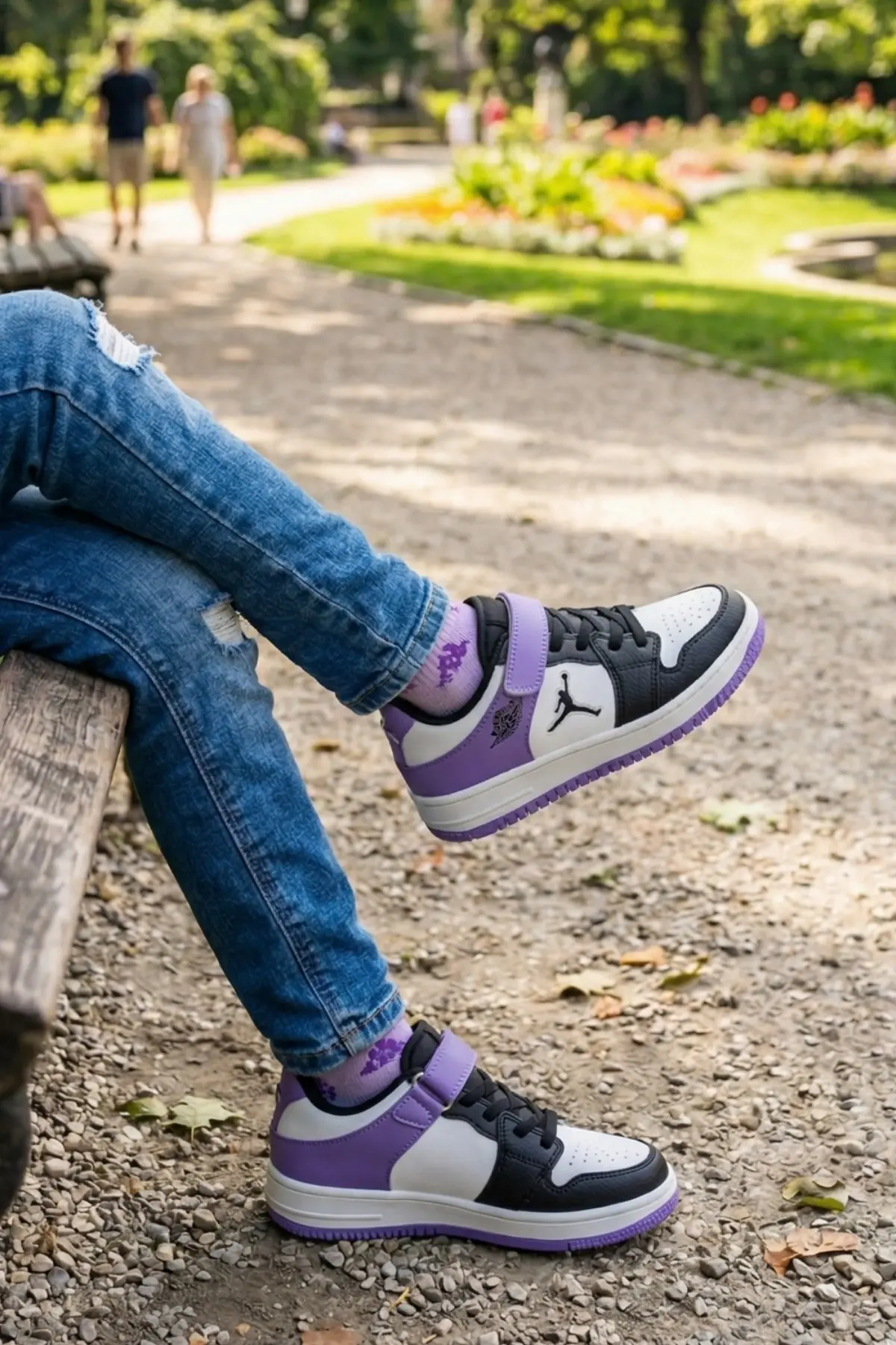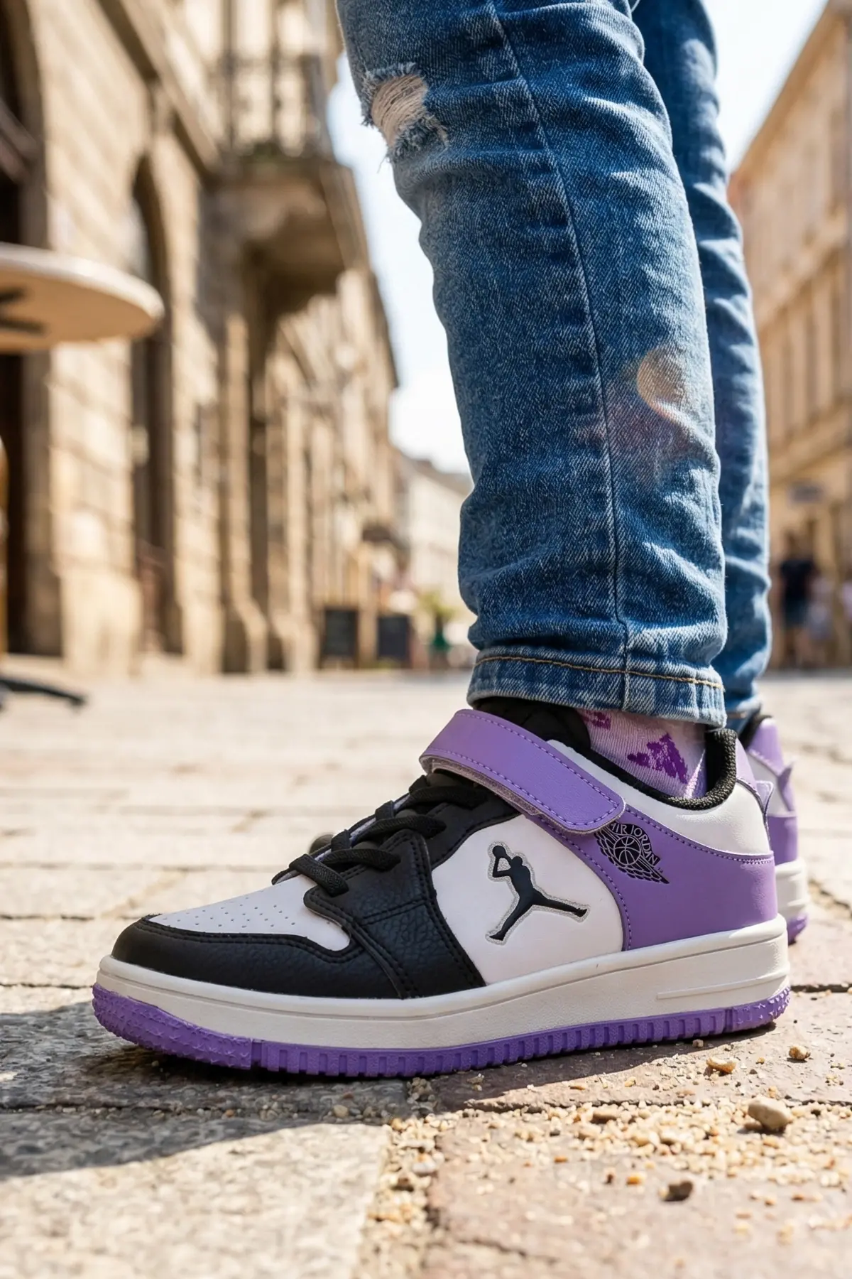 IN STEP markasının şık ve rahat Pedira Kız Çocuk Mor Beyaz Basketbol Tarzı Cırtlı Spor Ayakkabı, küçük sporcuların vazgeçilmezi olmaya aday!