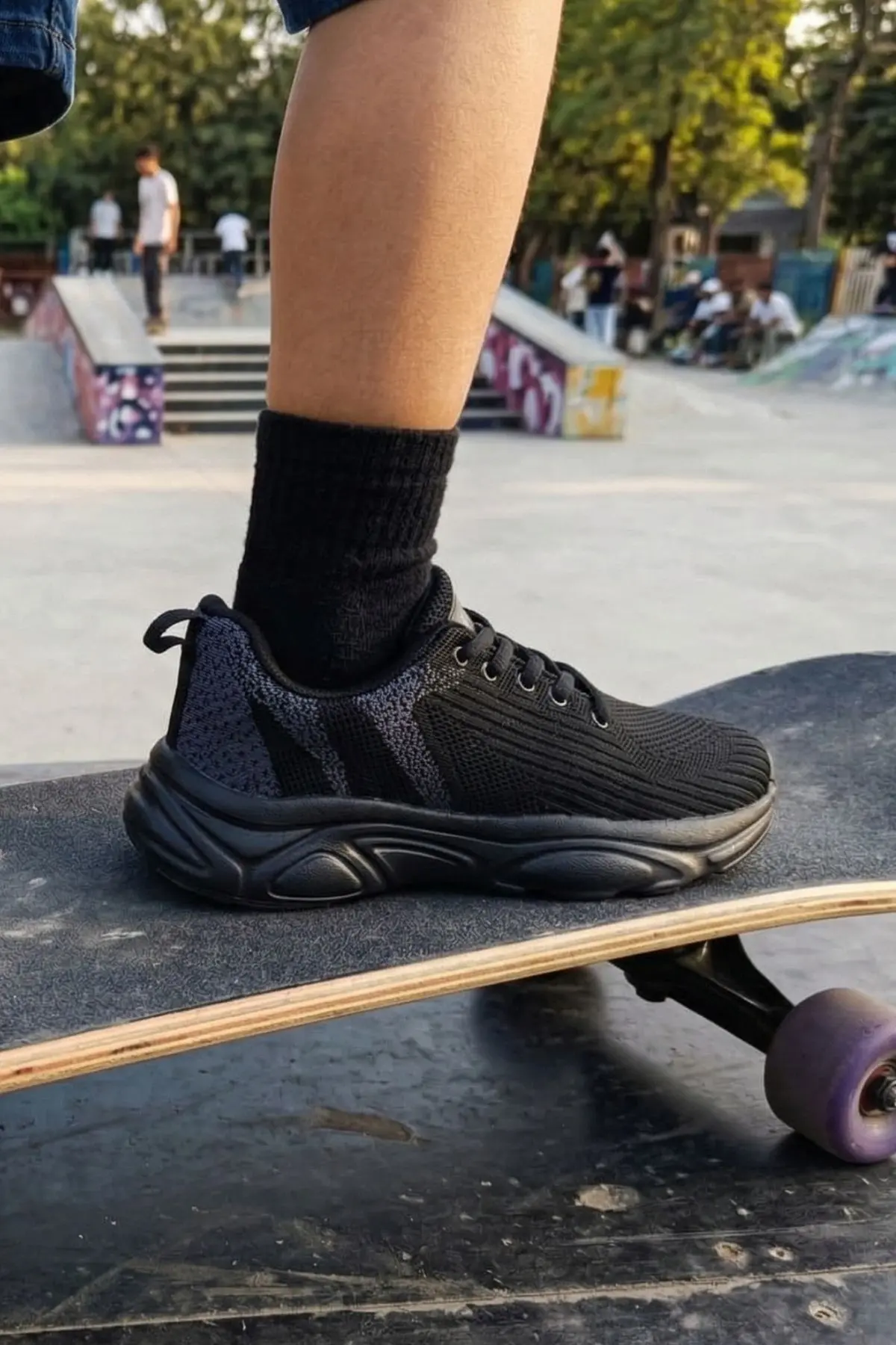 Pure Black Ultra Hafif Nefes Alabilir Çocuk Spor Ayakkabı - Siyah
